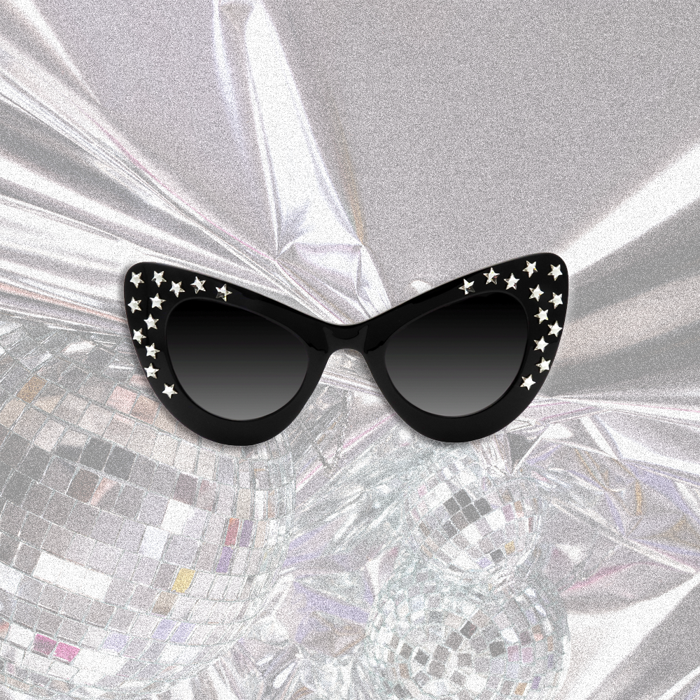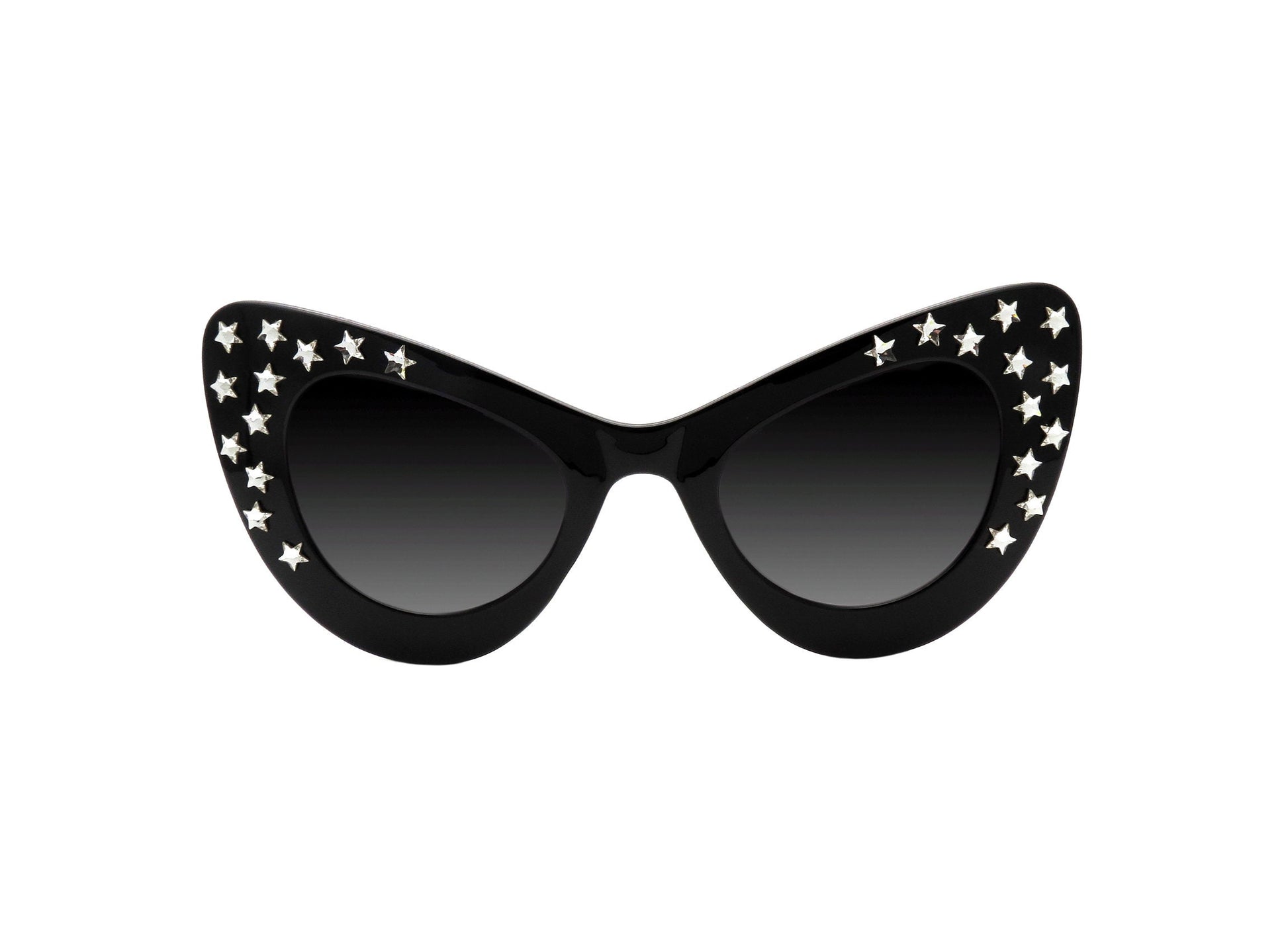 The Zoe sunglasses feature a bold vintage-inspired cat eye frame, transformed into a celestial masterpiece with the addition of unique crystal Swarovski stars, each carefully hand-applied to create a constellation of brilliance around your eyes. The standout feature of these sunglasses is the thoughtful arrangement of the star-shaped crystals: they're strategically placed to draw attention to the upswept corners of the cat eye shape.